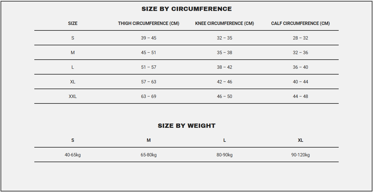 - Measure thigh circumference: about 15cm above the centre of your kneecap.